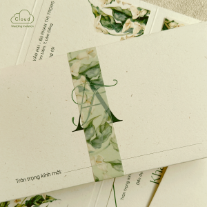 – Thiệp mời: 8 x 18 cm, quy cách in 2 mặt, gắn rời lên Folder thiệp, chất liệu giấy mỹ thuật cao cấp.